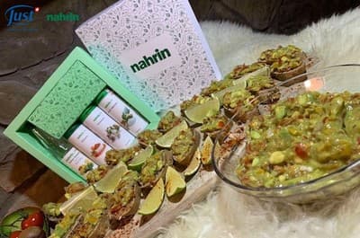 Avokádo, cherry paradajky, žltú papriku a šalotku nakrájame na drobné kúsky a vložíme do misky. Pridáme Bodliakový olej, olivový olej a dochutíme koreninami Nahrin. Všetko spolu dobre premiešame. Na záver môžeme pokvapkať šťavou z limetky.