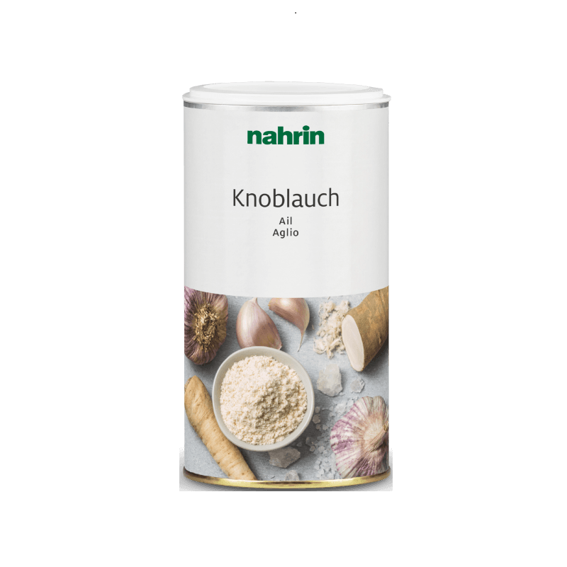 cesnak 44 %, horská soľ z oblasti Bex (CH), rozpustná kukuričná vláknina, cibuľa, zemiakový škrob, prírodná aróma, repkový olej, chren, koreň petržlenu